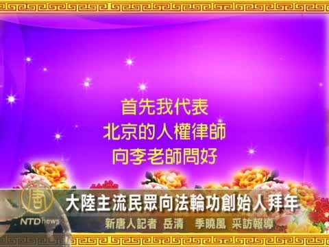 【新唐人2011年2月4日訊】萬物思春盼景明,千寒苦歷幻明清。大陸法輪功修煉群體遭受了歷時十餘年的打壓,可是越來越多的大陸主流民眾明白了法輪功的美好和法輪功學員的善舉。中國新年來臨之際,他們紛紛通過各種渠道,向法輪功創始人李洪志先生拜年。