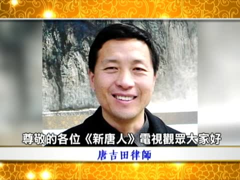 【新唐人2011年2月5日訊】尊敬的各位新唐人電視觀眾大家好,在傳統的新春佳節即將到來之際,作為得到大家一貫支持的一個中國內地的律師,在這裡向各位拜年,感謝大家一直以來給我的幫助,我也會在新的一年裡盡我最大的努力。