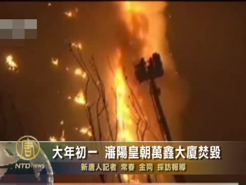【新唐人2011年2月5日訊】大年初一凌晨0點13分,位於瀋陽市中心,高219米,號稱東北第一高樓的「白金五星級」酒店,皇朝萬鑫大廈發生火災。因除夕夜,大廈內人員不多,疏散及時,無人傷亡。但大火延燒,通宵達旦,兩座塔樓都被燒至透頂。警方指,火災是因為燃放煙花,引燃酒店外牆引起的。除夕夜,北京有200多人被鞭炮炸傷,2人被炸死。