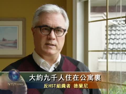 反HST組織者 德蘭尼:“大約九千人住在公寓裏,很難接觸到他們,我們原來認爲寄直郵信給他們會有幫助,結果發現讓人們出來簽名還是很困難。”