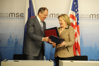 【新唐人2011年2月6日訊】2月5號, 美國國務卿希拉里•克林頓與俄羅斯外長拉夫羅夫在德國慕尼黑交換有關文件,美俄新的核裁軍條約《削減和限制進攻性戰略武器條約》由此正式生效。