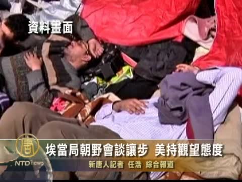 【新唐人2011年2月7日訊】2月6號(星期天),埃及副總統蘇萊曼,和主要的反對派進行談判,作出讓步,希望以此結束已經延續13天的抗議活動。對此,美國國務卿希拉里,在接受美國全國公共廣播電臺採訪時表示,美國持觀望態度。