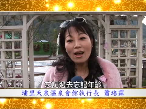 全球的華人觀眾朋友大家好,我是埔裡天泉溫泉會館的執行長蕭培霖,祝福大家在新的一年裡面,新年新希望,忘記的忘,忘記過去忘記年齡,忘記體重,祝福大家新年快樂,恭喜發財。