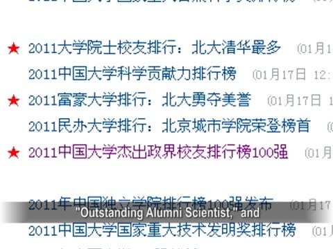 In fact, the list was composed of a series of ranking, including “2011 Alumini Ranking of Academician,”“Outstanding Alumni Scientist,” and “Outstanding Alumni Politicians” and so on.