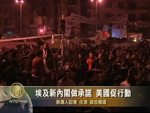 【新唐人2011年2月8日訊】星期一(2月7號),埃及的反政府抗議者表示,穆巴拉克下臺就結束抗議,而新內閣在首次會議裡,作出包括提升政府僱員工資等承諾,希望緩解示威者的情緒。對此,美國白宮發言人督促埃及採取行動。