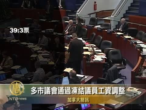 多倫多市議會今天以39對3票的投票結果通過,凍結市長和市議員2011年工資上調2.6%的決議。目前多倫多市議員的年薪是99,000,市長的年薪是168,000。