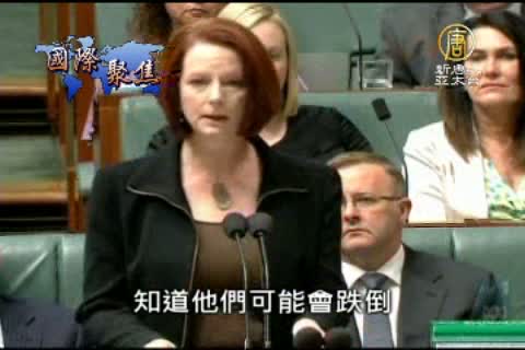 【新唐人亞太台2011年2月9日訊】澳洲總理朱莉婭‧吉拉德8日在國會發表講話,含淚慰問全國各地飽受水災之苦的民眾,對他們的犧牲與勇氣表示敬意。