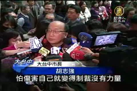 【新唐人亞太台2011年2月9日訊】針對菲律賓將14名台籍詐欺嫌犯遣送中國大陸的事件,台中市政府 8日舉行新春團拜,市長胡志強說:菲律賓的作為不當,輕忽中華民國的立場及人民的感受,他認為,台灣政府「要更強硬一點」。