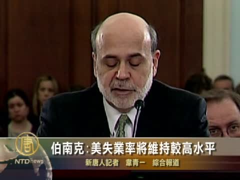 【新唐人2011年2月10日訊】美聯儲主席伯南克(Ben S. Bernanke)週三向國會作證時表示,雖然美國失業率在過去兩個月中的降幅創下了自1958年以來的最高水平,但仍很有可能在“一段時間內”維持在較高水平。