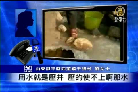 山東鄒平縣西董鎮於張村 劉女士:「沒有水啊,有3個月了,水有點乾,就是多打井啊,用水就是壓井,壓的使不上啊那水。」