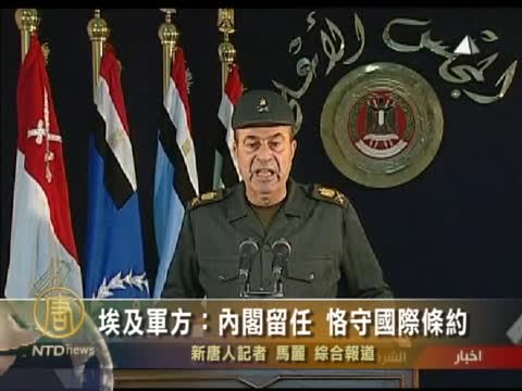 【新唐人2011年2月13日訊】2月12號,埃及新的軍方統治者表示,目前內閣應該繼續留任,等到新內閣選舉出來再移交權力,並表示埃及會遵守國際條約。