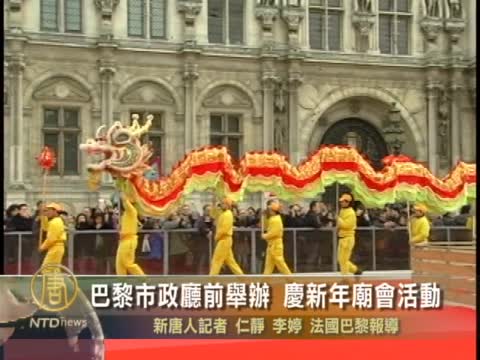 【新唐人2011年2月15日訊】2月13日,爲慶祝中國農曆新年,巴黎市政廳廣場上舉辦了一場熱鬧非常的文藝表演慶祝活動,這是在巴黎13區華人彩妝大游行後的又一次慶祝華人農曆新年的盛大活動,請看前方記者發來的報導。