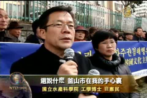 【新唐人亞太台2011年2月17日訊】今年1月底,儘管受到中共駐南韓外交官有組織的干擾,但美國神韻國際藝術團在釜山的演出,不但相當成功而且受到韓國民眾的熱烈歡迎。16號,南韓民間團體在釜山召開記者會,正式啟動了驅逐中共駐釜山副領事金燕光的活動。請看來自南韓釜山的報導。