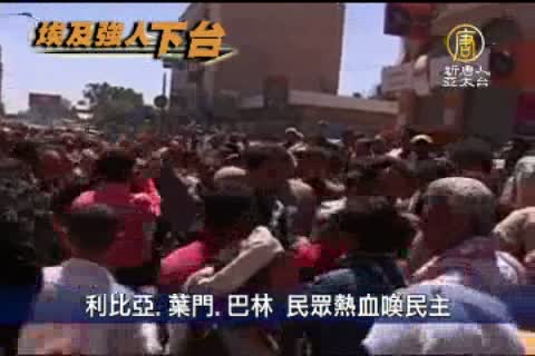 【新唐人亞太台2011年2月17日訊】民主浪潮席捲阿拉伯世界,繼突尼西亞和埃及之後,民眾相繼通過抗議推翻獨裁政府,星期三(2月16號),在利比亞、葉門、巴林,民眾冒著政府的打壓,繼續舉行反政府抗議,要求政府辭職。過程中,多地發生流血衝突。