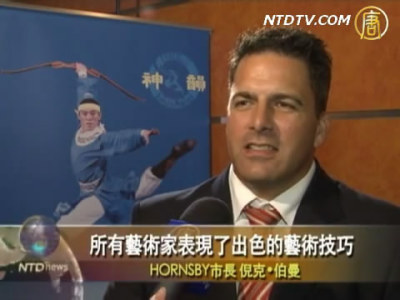 【新唐人2011年2月18日訊】正在悉尼演出的美國神韻國際藝術團進入了第11天,觀眾們為之歡呼喝采,悉尼一位愛好文化的市長在觀看後肯定的說,神韻以出色的藝術技巧展現了純善的中國文化,他同時駁斥了中領館發出的詆譭神韻的言論。