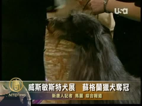 【新唐人2011年2月18日訊】2月14日至15日,世界聞名的威斯敏斯特犬展在紐約舉行,一只蘇格蘭獵鹿犬黑克瑞(Hickory)獲得了冠軍。