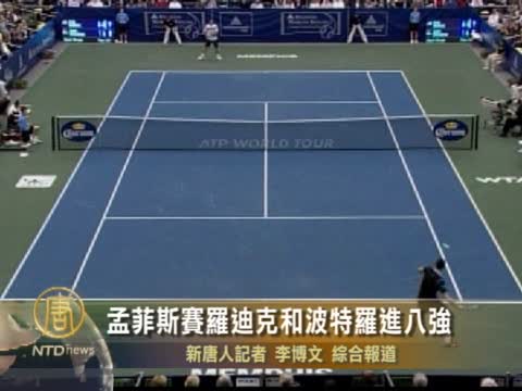 【新唐人2011年2月18日訊】星期四,美國孟菲斯網球公開賽進行了第二輪的爭奪,結果頭號種子羅迪克和前美網冠軍德爾波特羅各自擊敗對手,晉級八強。