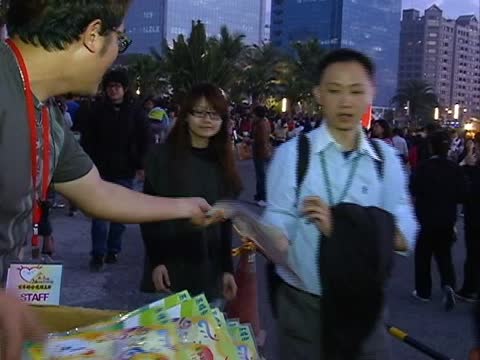 【新唐人2011年2月18日訊】為了慶祝元宵佳節,台灣高雄燈會限量發放三萬盞高耀兔頭燈,吸引大批民眾排隊領取。長達六分鐘的重頭戲「環港煙火秀」搭配3D水舞演出,讓觀賞民眾驚呼連連,請看來自台灣高雄報導。
