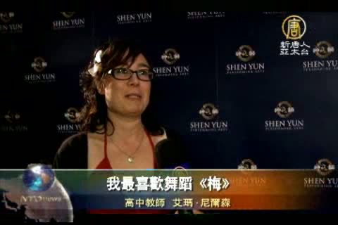 高中教師艾瑪‧尼爾森( Emma Nelson):「我最喜歡舞蹈《梅》。扇子很特別,那個扇子舞,以前從沒見過,扇子看起來就像梅花,好極了,我真的很喜歡那個節目。」