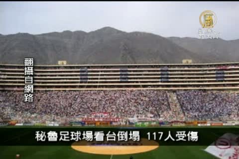 祕魯一處足球場的金屬平台18日意外倒塌,當場壓住了超過500名正在觀看比賽的球迷,其中有117人因此受傷,還有至少12名球迷受到嚴重的傷害,但傷勢都還不到致命的程度。