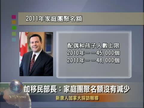【新唐人2011年2月19日訊】今天加拿大移民部長肯尼召開了電話會議,澄清了一些媒體對加拿大移民政策的錯誤報導,他表示2011年的家庭團聚移民名額沒有減少,反而比2010年有所增長。