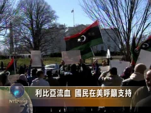 當天,數百名示威者聚集在美國白宮前的公園,高舉“聲援我們的親人”(SOLIDARITY WITH OUR LOVED ONES)等標語和旗幟,要求控制利比亞42年的卡扎菲政府辭職,呼籲美國政府能夠施壓卡扎菲,迫使他辭職。
