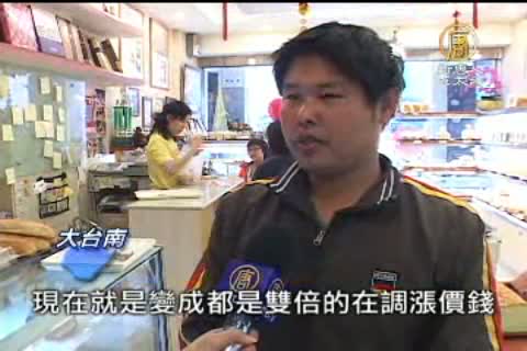【新唐人亞太台2011年2月21日訊】最近原物料高漲,讓糕餅業者大喊吃不消,台南市有麵包店業者表示,已經快撐不下去了。如果原物料繼續漲的話 就會部分調漲售價,不過只會先調漲一成左右。