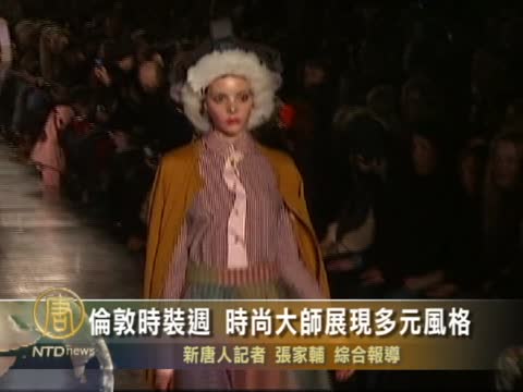 【新唐人2011年2月22日訊】倫敦時裝週第三天,英國時尚設計大師魏斯特伍德從電影《愛麗絲夢遊仙境》中獲得靈感,以彩色混搭風,將花樣的色彩融入服裝中。馬修威廉姆森則是融合自然和未來的元素,在色彩和材質上展現了樸素飄逸的效果。