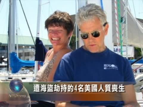 【新唐人2011年2月23日訊】美國中央司令部星期二(2月22日)發表聲明說,上週五在印度洋海域遭海盜劫持的4名美國人質已經喪生,他們是在美軍試圖解救他們時被海盜槍殺的。