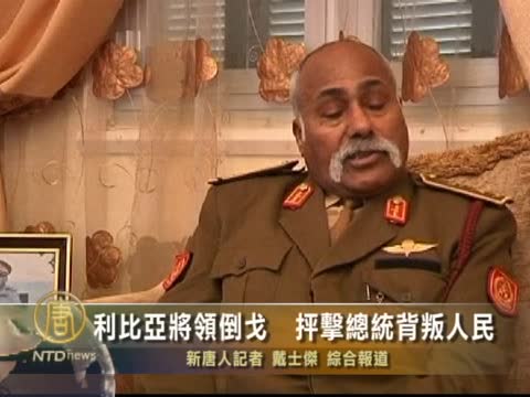 【新唐人2011年2月25日訊】利比亞軍方將領馬赫穆德少將(Major- General Suleiman Mahmoud) 星期三表示,他已摒棄了暴君總統卡扎菲,並指責且背叛了國家和人民,造成利比亞的分裂。目前陷入困境的卡扎菲掌控的地區逐漸縮小,反對派勢力漸趨鞏固。