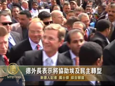 【新唐人2011年2月25日訊】德國外長韋斯特韋勒訪問埃及時稱讚埃及創造了世界的歷史,並表示德國會協助埃及順利轉型成民主國家。