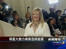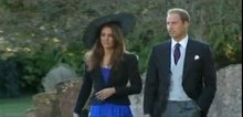 威廉王子一身黑色的風衣,凱特則身著陀色呢子大衣,常常的頭髮高高地偺在腦後﹔脖子上係著一條黑色圍巾,頭上戴著羽毛的頭飾,平常中點綴著皇家的尊貴和高雅。
