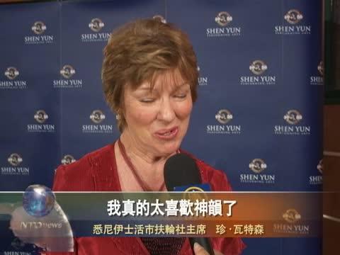 伊士活扶輪社主席珍•瓦特森:“我真的太喜歡神韻了。非常精彩的一場演出。我想我喜歡的原因是神韻講了一個故事。我非常欣賞色彩及激情。幾乎整場都是翩翩起舞,給我的感覺是演出的內容適合所有年齡層的人。”