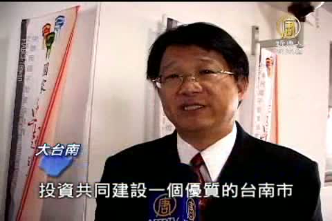 「我們也要發揮這地方的特色,包括這地方文化的特色,這地方美食的特色,這地方民間藝術的特色,或者是讓國內的民眾來投資共同建設一個優質的台南市。」