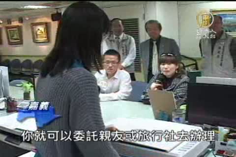 【新唐人亞太台2011年2月28日訊】剛剛看到的是台灣觀光軟實力,現在要帶給您的消息是,現在台灣人出國旅遊,又更方便了。外交部宣佈,今年7月開始申辦護照都必須本人到場辦理,不過好處是到各地的戶政事務所就可以辦理,而且從下個月,3月1日起,全國124個戶政事務所將開始試辦這項「護照親辦」措施。