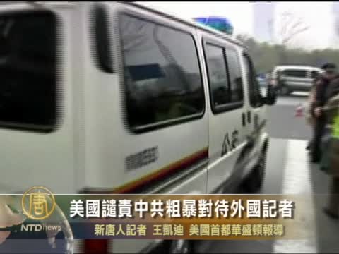 【新唐人2011年3月1日訊】週日,外國媒體在中國大陸採訪抗議集會時,遭到中共警察和便衣的毆打與拘留。美國駐華大使就此向中共當局提出抗議,國務院發言人也敦促中共當局尊重駐華外國記者權利,並使那些肇事者對此負責。