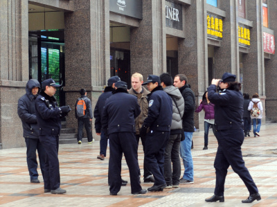 週日,在北京王府井,外國媒體記者在採訪一場抗議集會時,遭到中共警察和便衣的毆打與拘留,多名記者被警察強行帶走。