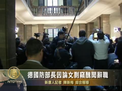 【新唐人2011年3月1日訊】德國國防部長加滕伯格(Karl-Theodor zu Guttenberg),因捲入了抄襲博士論文醜聞,在星期二(3月1日)辭去所有政治職位。