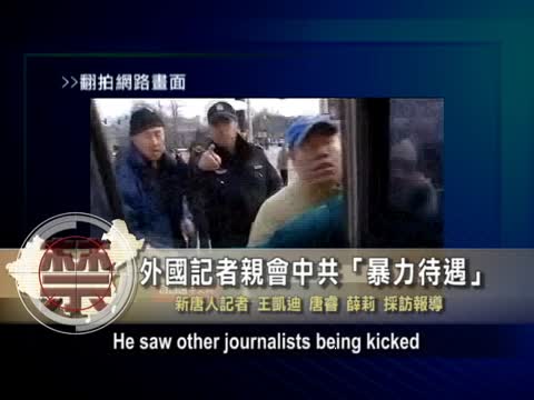 【新唐人2011年3月2日訊】外國媒體記者,在中國遭到中共警察和便衣的暴力毆打和拘押。27號,在北京最著名的購物街——王府井,中共排出大量警察、便衣、保安人員抓捕抗議民眾。許多外媒記者紛紛趕到現場試圖採訪,卻遭到中共警察和便衣的毆打,多名記者被警察強行帶走,遭關押或肢體上的攻擊。