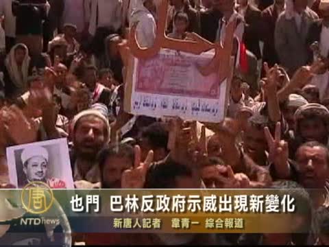 【新唐人2011年3月4日訊】也門總統薩利赫已同意反對派領袖的提議,在年底前下臺。而巴林反對派領袖也以調和的態度,宣佈準備與政府對話。不過兩國很多示威者仍沒有改變讓當權者立即下臺的初衷。抗議活動依然持續進行。