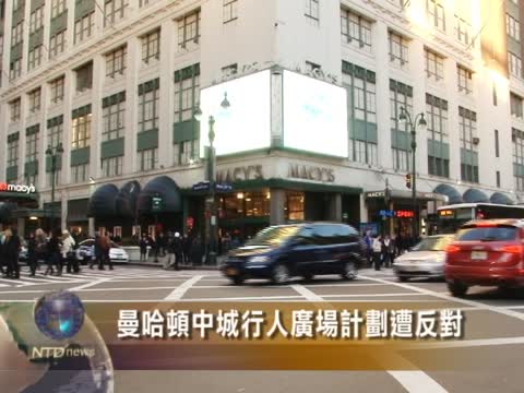【新唐人2011年3月4日訊】因社區反對聲浪較大,紐約市政府收回了在曼哈頓中城34街從先鋒廣場到帝國大廈的路段改成行人廣場的計劃。