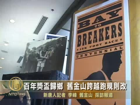 【新唐人2011年3月4日訊】Bay to Breakers,既舊金山跨越跑是舊金山的一項傳統賽事,始於1912年。2月26日,百年前第一屆舊金山跨越跑的冠軍獎盃,返回了故鄉,為第一百屆賽事的來臨,奏響了序曲。