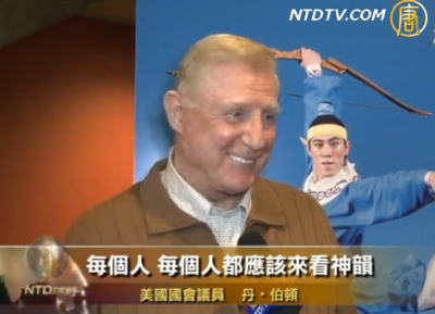 美國國會議員丹•伯頓:“與我在這些年來我看過的百老匯演出和其它演出相比,這是我看過的最好的演出之一。我認為所有的美國人和全世界的所有人都應該來看神韻。整場演出絕對精彩。”
