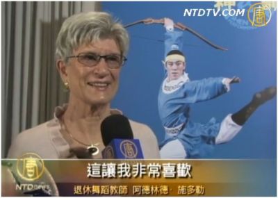 退休舞蹈教師阿德林德‧施多勒:「今晚的演出深深感動我的地方是,她完美的呈現了中國古老的傳統思想和文化。不是現代中國的東西,而是我在古老的書籍中所認識到的中國,這讓我非常喜歡。我希望,神韻能繼續這樣傳播中國傳統文化。」