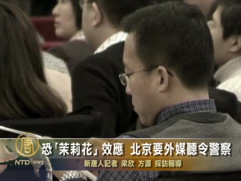 【新唐人2011年3月7日訊】受到中東地區“茉莉花革命” 蔓延效應,中國網民6號第三波號召民眾到特定場所或者廣場散步。中共派出大批公安便衣在集會地點嚴密部署﹔有外媒記者透露,他們受到威脅、不被允許採訪﹔必須聽令於警察。