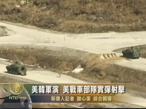 【新唐人2011年3月7日訊】美韓正在進行代號”關鍵決斷(Key Resolve)”和”鷂鷹”(Foal Eagle 註:鷂唸作「搖」)的年度演習。星期一(3月7日)中午,美國斯特瑞克(Stryker)戰車部隊在首爾北邊的凱西兵營(Camp Casey)進行了一個半小時的實彈射擊訓練。