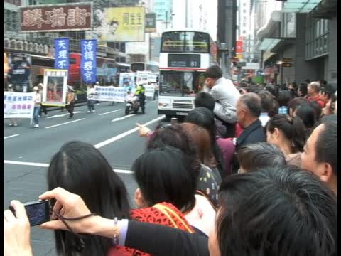 遊行隊伍途經九龍區最熱鬧的街道,沿途吸引許多途人駐足觀看。