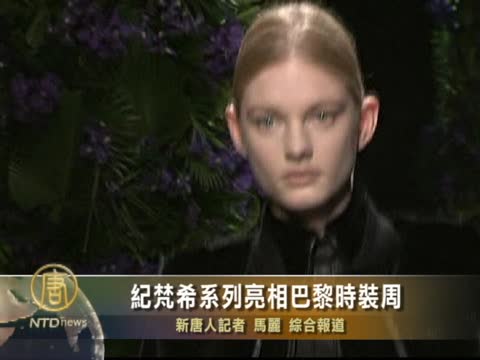 【新唐人2011年3月8日訊】3月6號,設計師紀梵希 (Givenchy ) 的2011/2012秋冬時裝閃亮登場巴黎時裝周,該品牌的創造靈感來自於美國的“萬人迷”女星貝蒂•佩吉,她的面容被印在天鵝絨的綠色襯衫上。