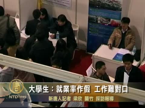 【新唐人2011年3月9日訊】中共人力資源和社會保障部部長尹蔚民,8號在兩會的記者會上聲稱,中國大學畢業生就業率達到90%以上;對尹蔚民的說法,有中國大學生表示不同意,甚至還指出一些大學在就業率方面,公然作假