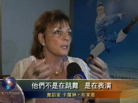 【新唐人2011年3月9日訊】美國神韻國際藝術團第五次光臨澳州首府堪培拉,首場演出觀衆爆滿,衆多專業人士更是被神韻演員們一流的頂級表演所折服。舞蹈家布萊恩女士表示,她從沒見過如此發自內心的表演,她非常希望自己也能成爲臺上的一員。下面前看來自堪培拉的報導